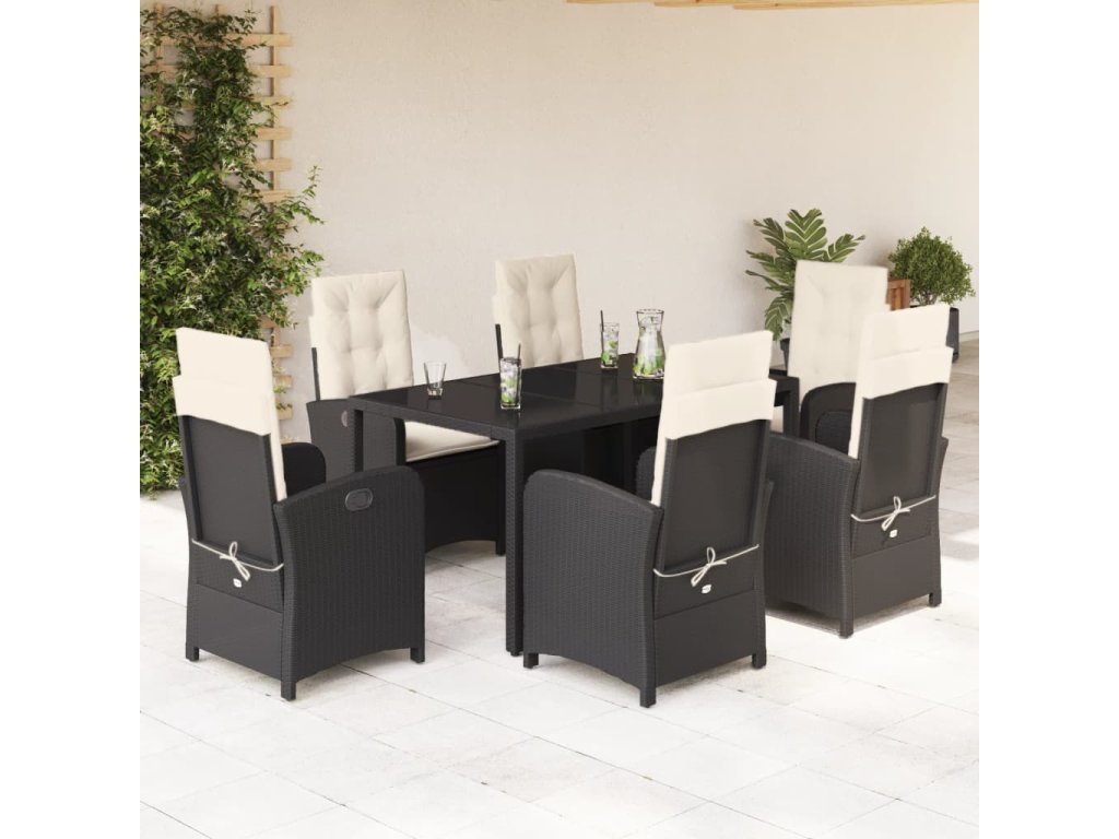 - Materiál: PE ratan, práškově lakovaná ocel, tvrzené sklo
