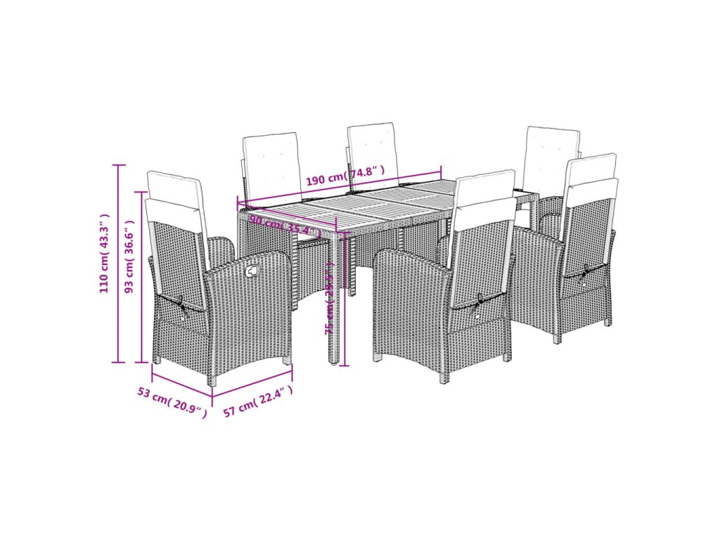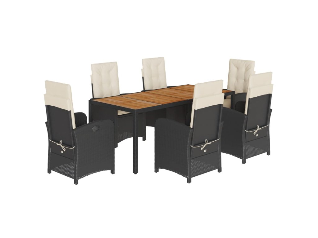 - Materiál: PE ratan, práškově lakovaná ocel, masivní akáciové dřevo s olejovou povrchovou úpravou