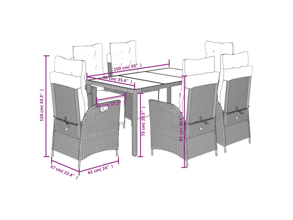 - Materiál: PE ratan, práškově lakovaná ocel, tvrzené sklo