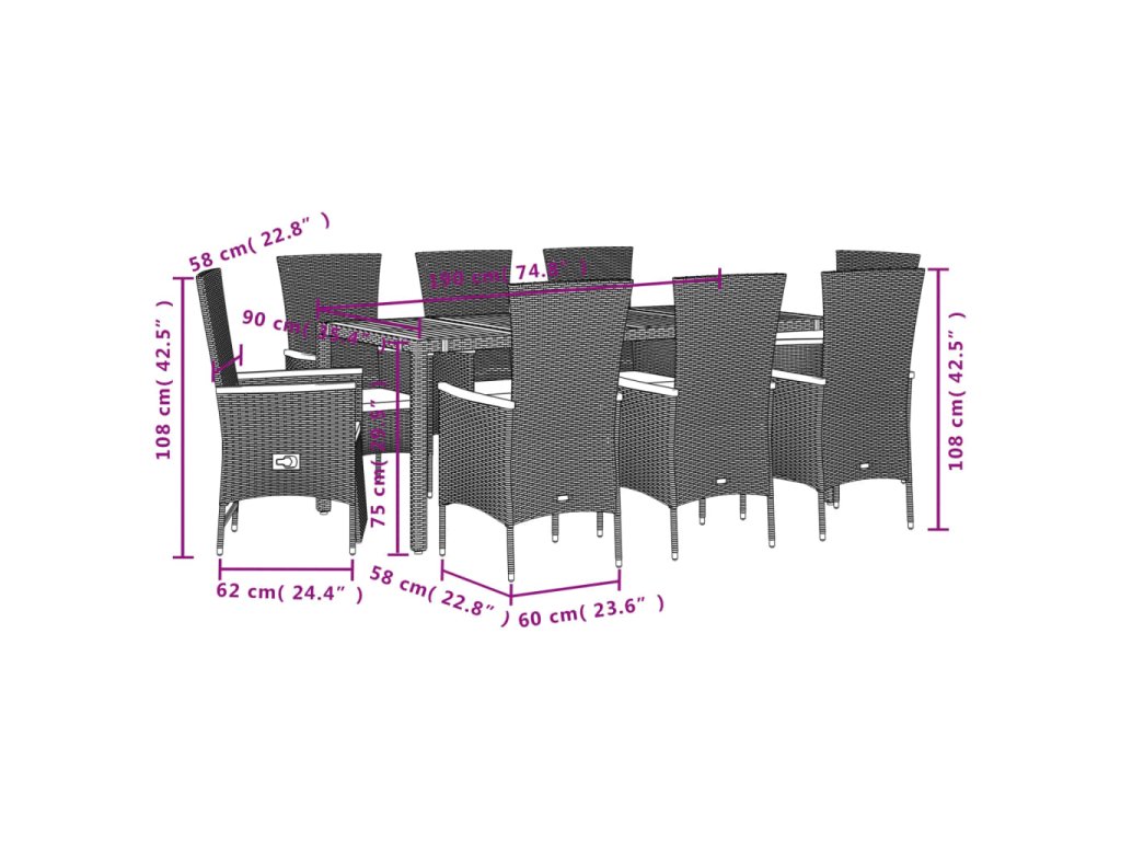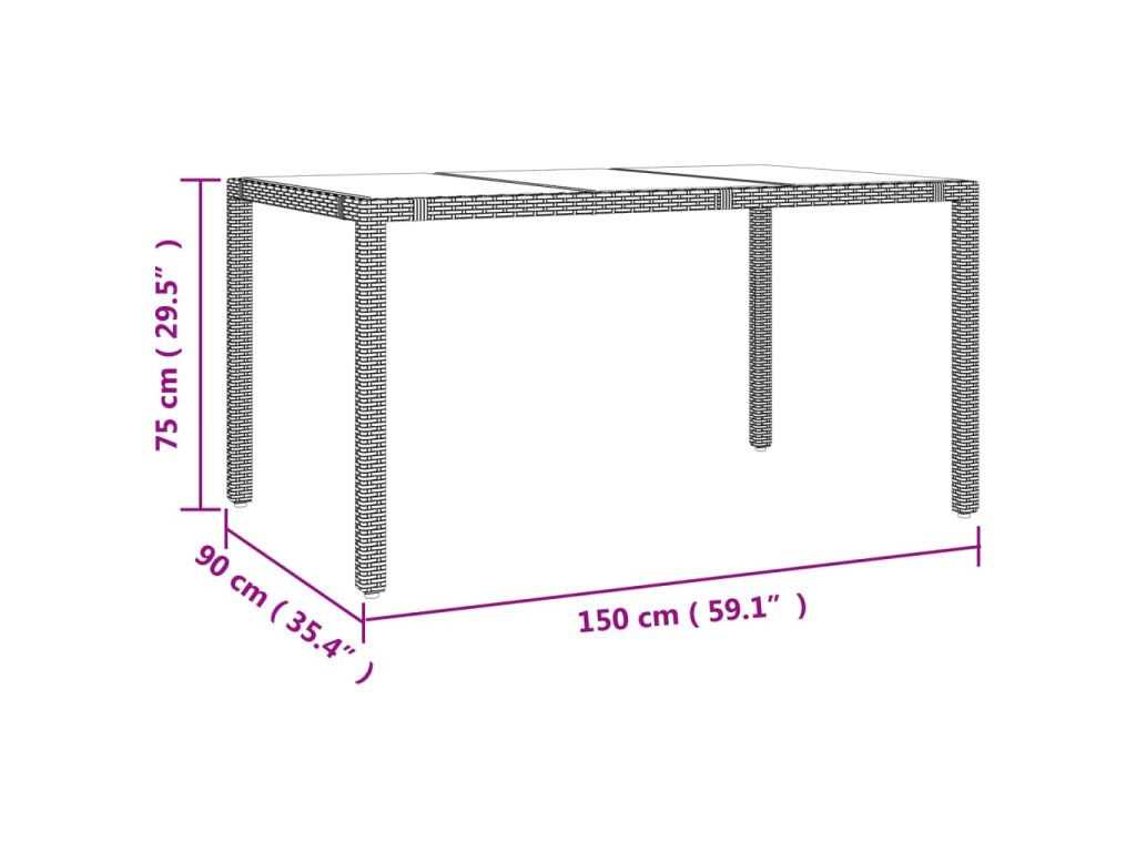 - Materiál: PE ratan, práškově lakovaná ocel, masivní akáciové dřevo s olejovou povrchovou úpravou