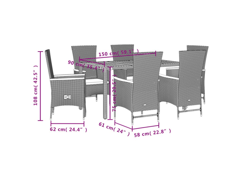 - Materiál: PE ratan, práškově lakovaná ocel, masivní akáciové dřevo s olejovou povrchovou úpravou