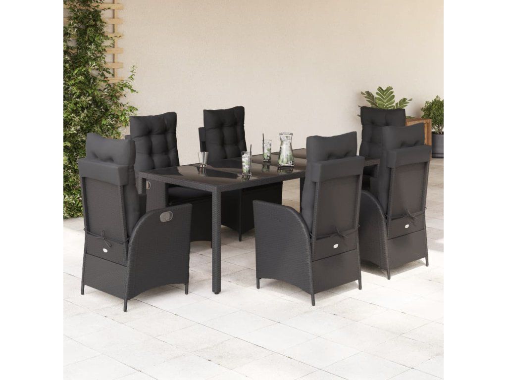 - Materiál: PE ratan, práškově lakovaná ocel, tvrzené sklo