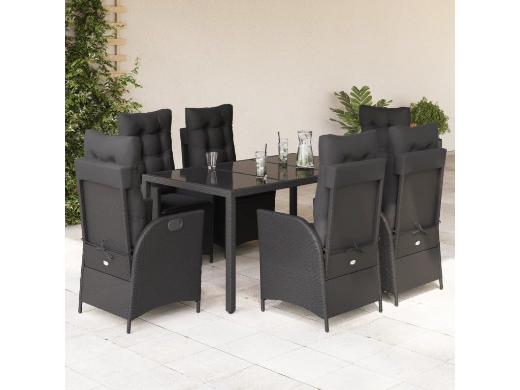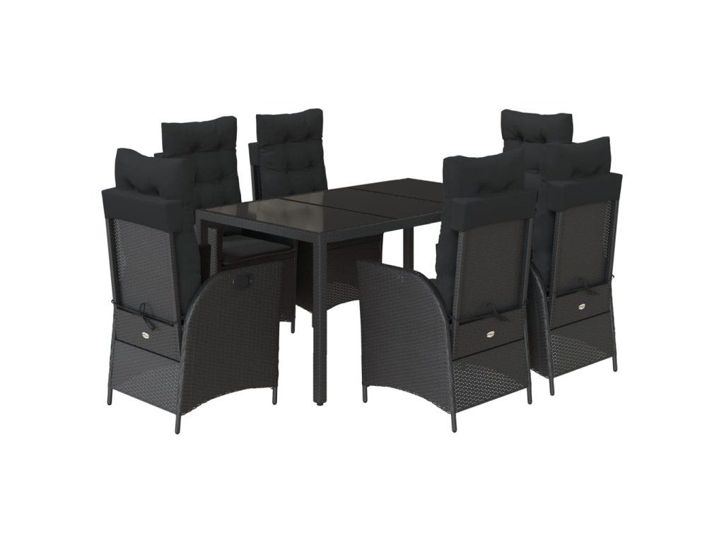 - Materiál: PE ratan, práškově lakovaná ocel, tvrzené sklo
