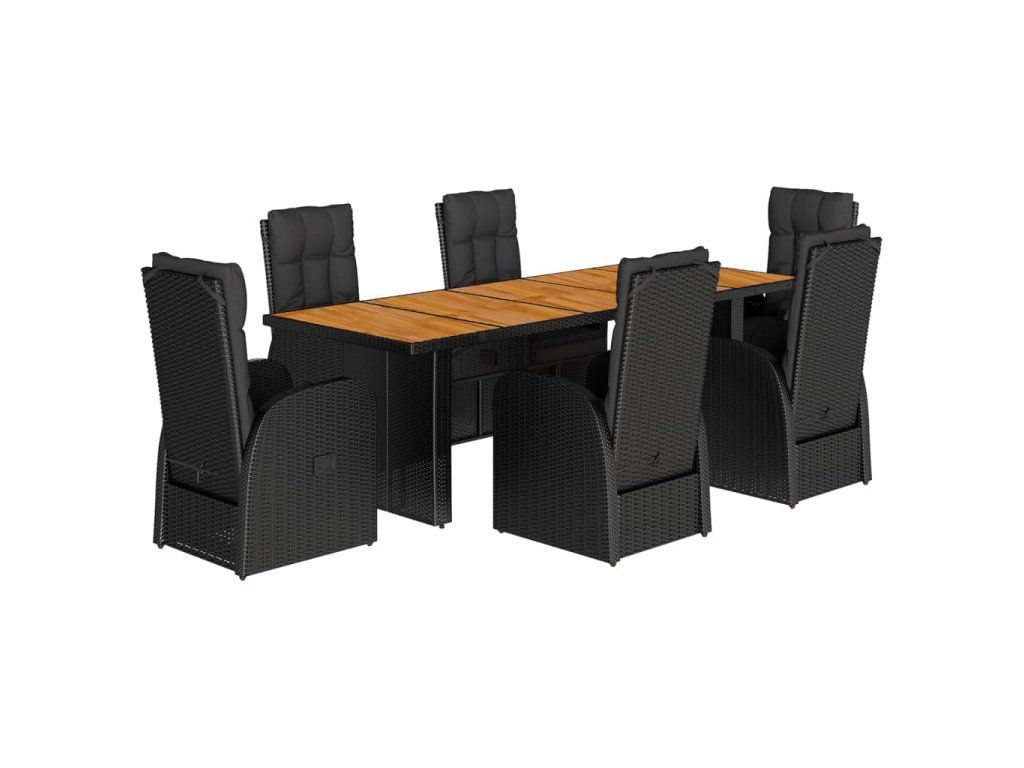 - Materiál: PE ratan, práškově lakovaná ocel, masivní akáciové dřevo s olejovou povrchovou úpravou
