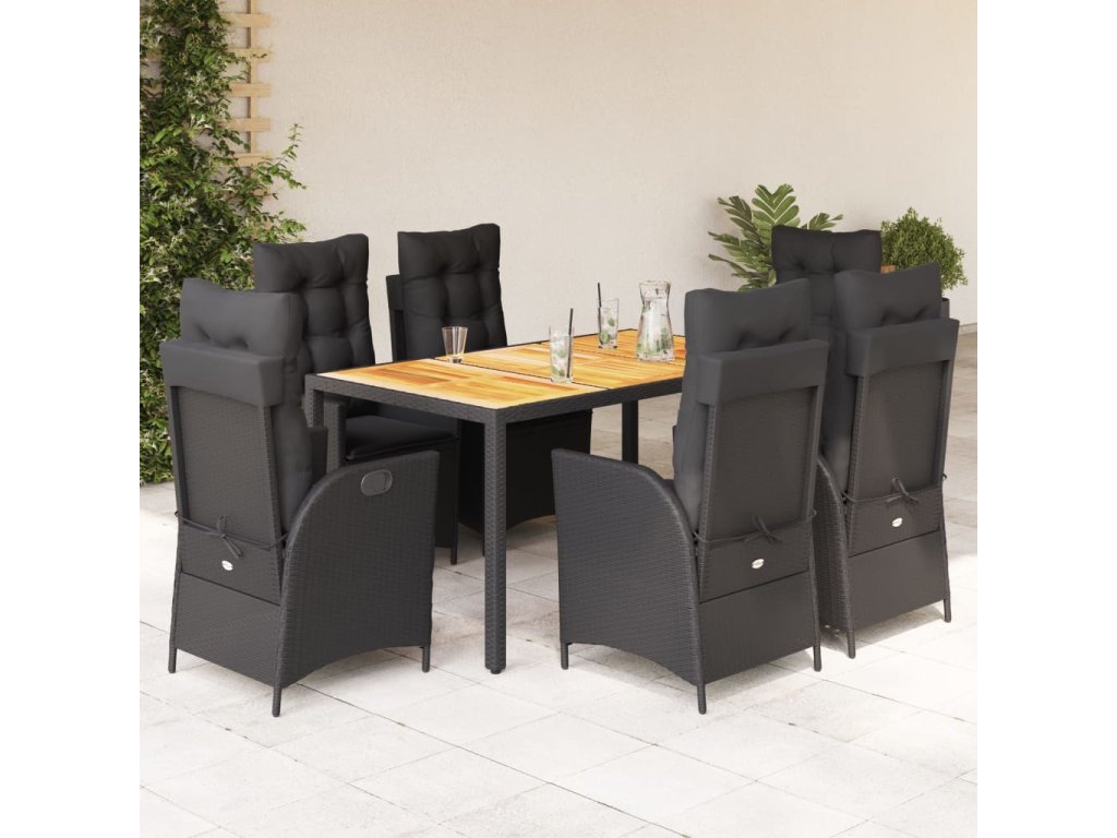 - Materiál: PE ratan, práškově lakovaná ocel, masivní akáciové dřevo s olejovou povrchovou úpravou