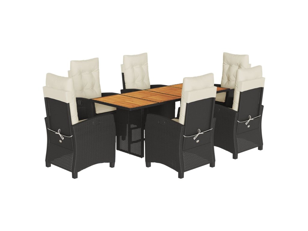 - Materiál: PE ratan, práškově lakovaná ocel, masivní akáciové dřevo s olejovou povrchovou úpravou