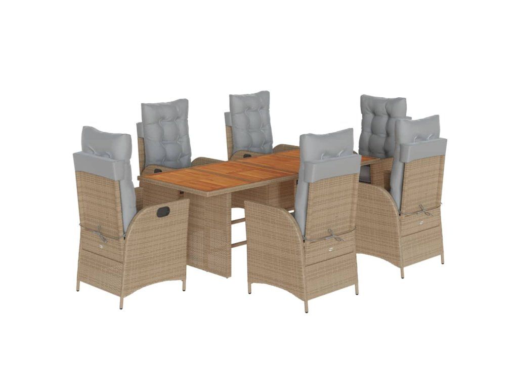 - Materiál: PE ratan, práškově lakovaná ocel, masivní akáciové dřevo s olejovou povrchovou úpravou