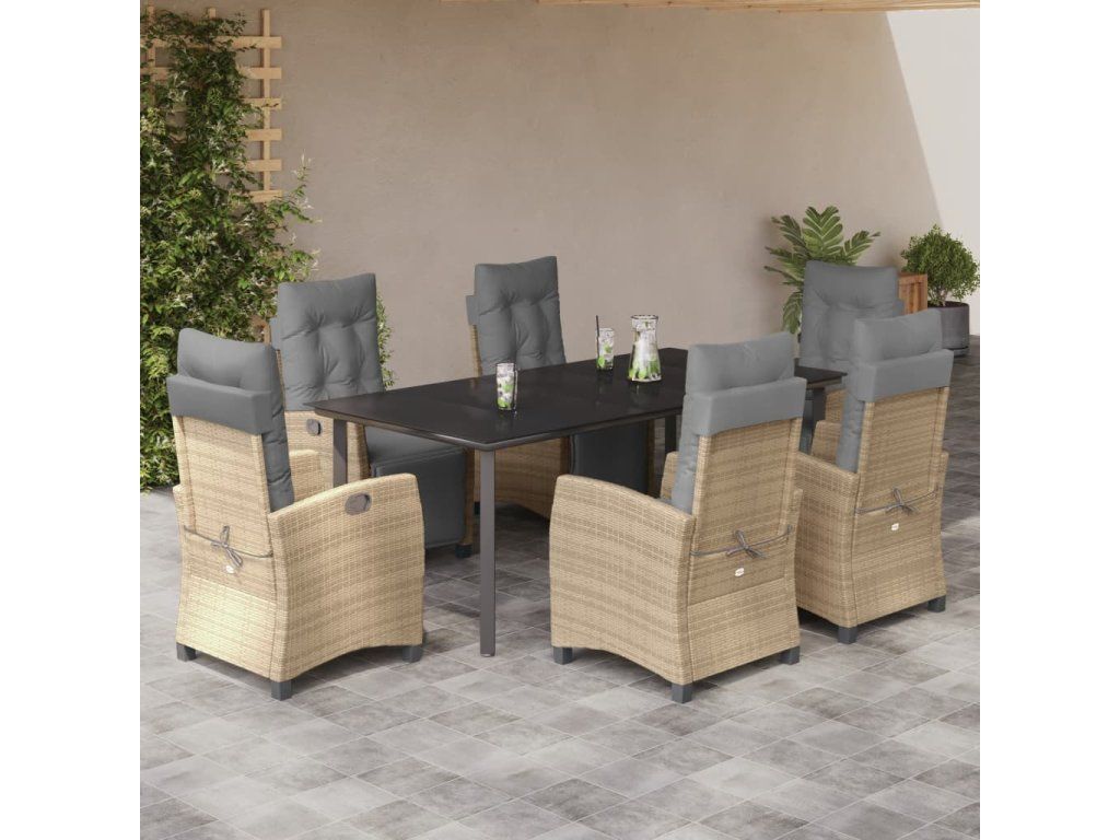 - Pohodlné sezení: Tento venkovní nábytek se silně polstrovanými poduškami a polštáři nabízí pohodlné sezení.