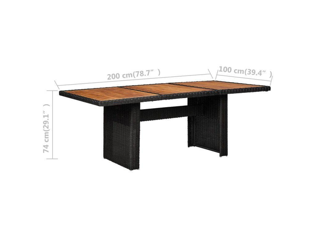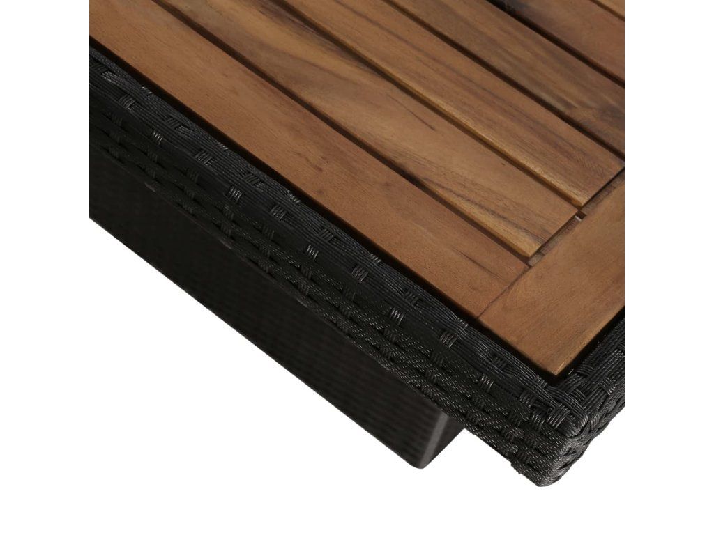 - Materiál: polyratan, práškově lakovaná ocel, masivní akáciové dřevo s olejovou úpravou