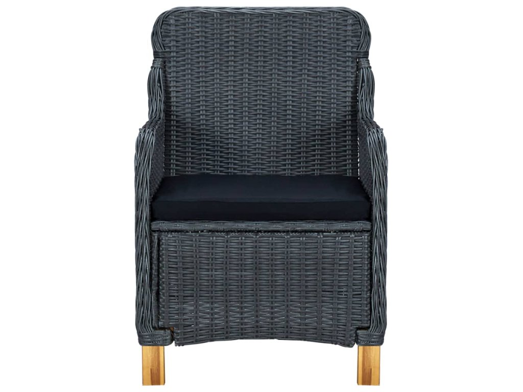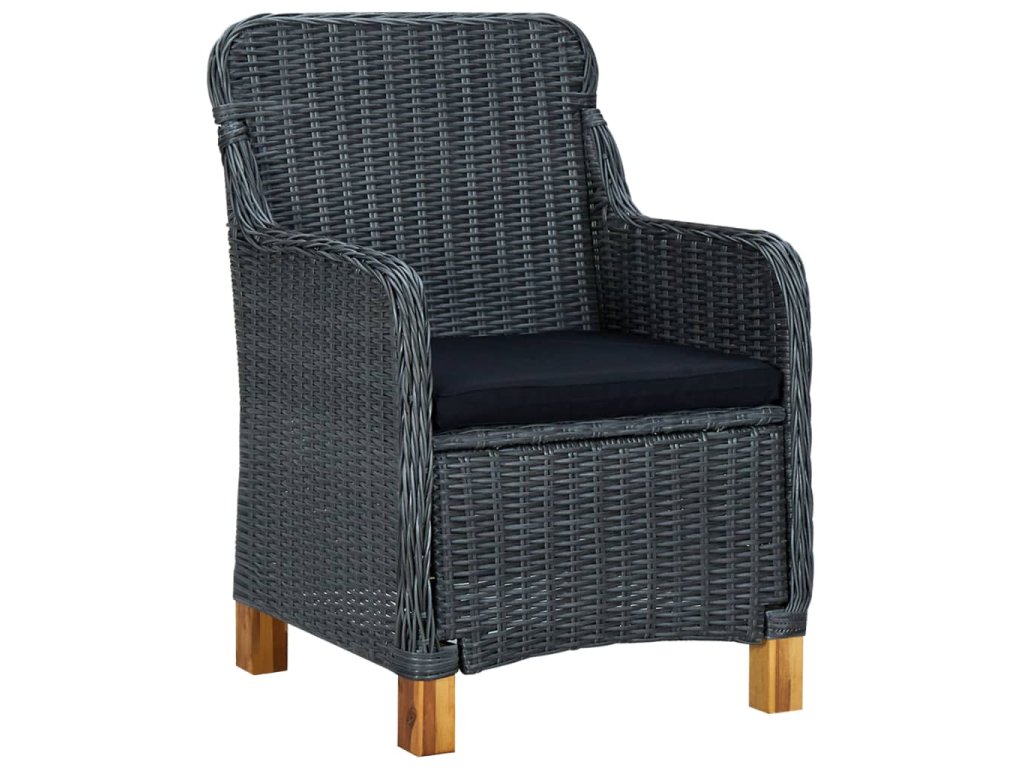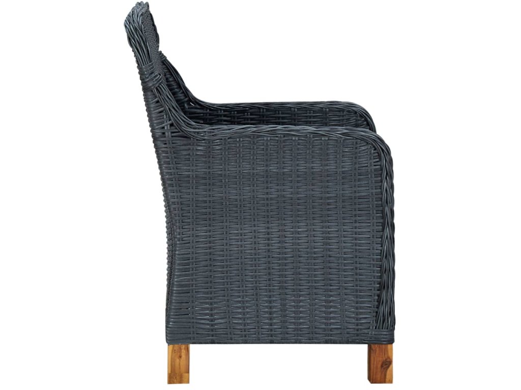 Zahradní nábytek je vyrobený z kulatého PE ratanu, který nevyžaduje téměř žádnou údržbu a snadno se čistí vlhkým hadříkem. Skvěle se proto hodí pro venkovní použití. Křesla i stůl mají rám z práškově lakované oceli, což jim zajišťuje výtečnou stabilitu a odolnost. Robustní stolní deska vám výborně poslouží k odkládání nebo vystavení nejrůznějších věcí. Hustě polstrované podušky vám při odpočinku poskytnou maximální pohodlí. Jejich potahy jsou opatřené zipem, aby se vám lépe stahovaly a praly. Nohy z masivního akáciového dřeva židlím dodávají na pevnosti a lepší rovnováze. Nábytek má lehkou konstrukci, takže ho můžete bez námahy přesouvat.