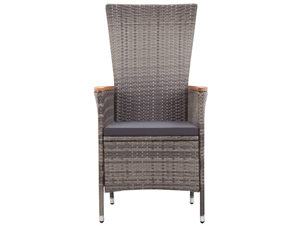 Stůl i židle mají rámy z práškově lakované oceli, jsou tedy robustní, stabilní a vhodné pro každodenní venkovní použití. Židle jsou vyrobené z voděodolného PE ratanu, takže se snadno čistí a hodně toho vydrží. Opěradlo i opěrku nohou si můžete nastavit zatažením za tlačítko na boku. Nábytek má lehkou konstrukci, lze ho tudíž bez námahy přesouvat. Husté polstrované podušky na sedák vám navíc zajistí mimořádné pohodlí. Jejich polyesterové potahy jsou nenáročné na údržbu a dají se stáhnout a vyprat. Hladká skleněná stolní deska, kterou jednoduše očistíte vlhkým hadříkem, je ideální k podávání jídla a pití nebo k vystavení různých dekorativních předmětů.