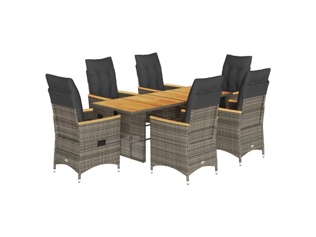 - Materiál: PE ratan, práškově lakovaná ocel, masivní akáciové dřevo s olejovou povrchovou úpravou