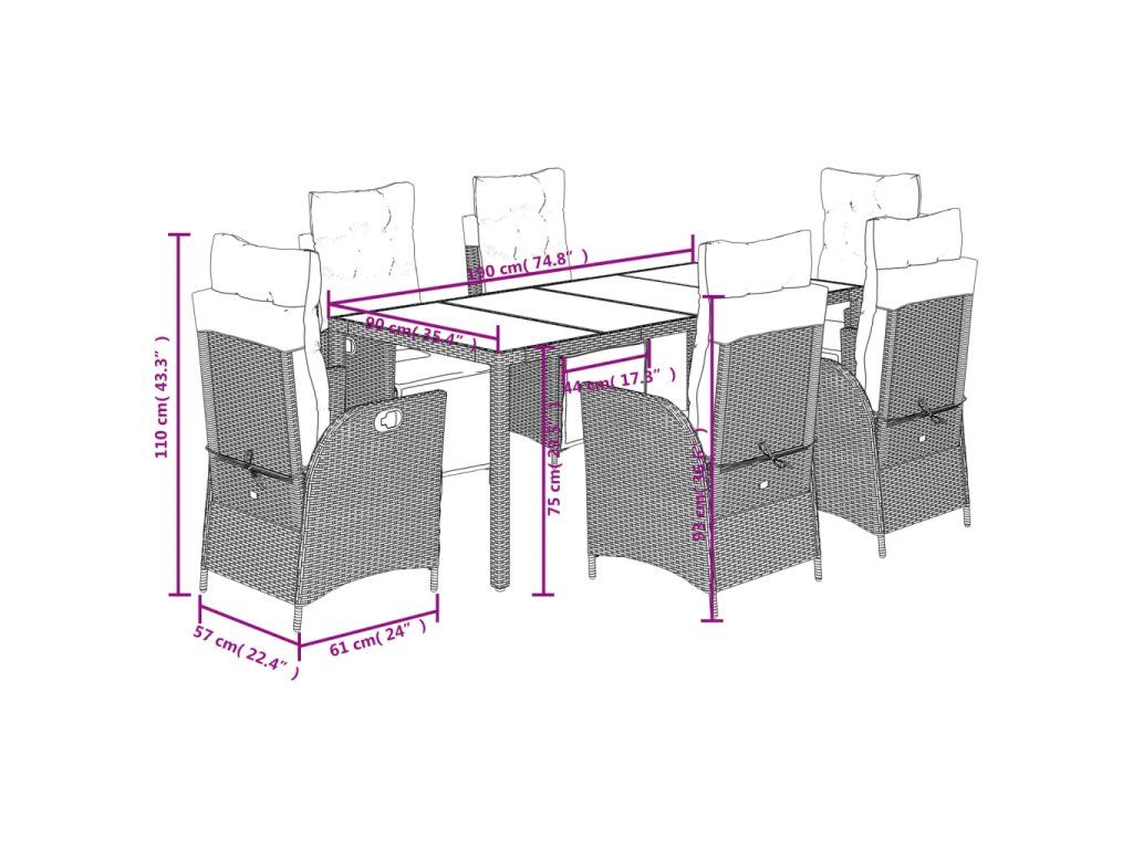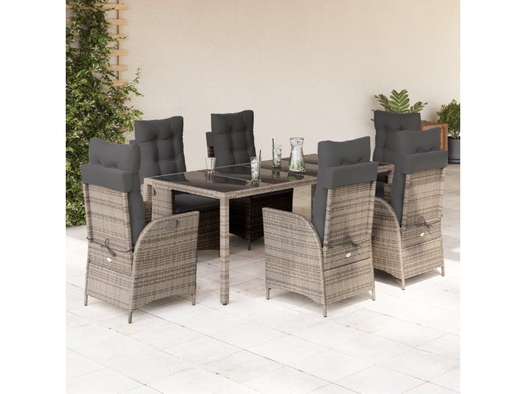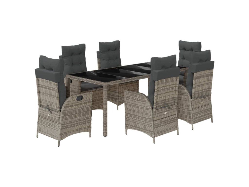 - Materiál: PE ratan, práškově lakovaná ocel, tvrzené sklo