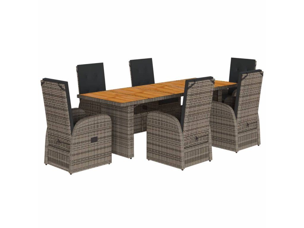 - Materiál: PE ratan, práškově lakovaná ocel, masivní akáciové dřevo s olejovou povrchovou úpravou