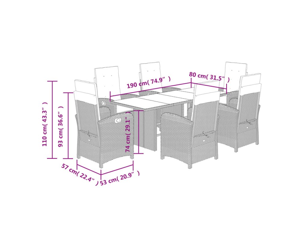 - Rozměry: 190 x 80 x 74 cm (Š x H x V)
