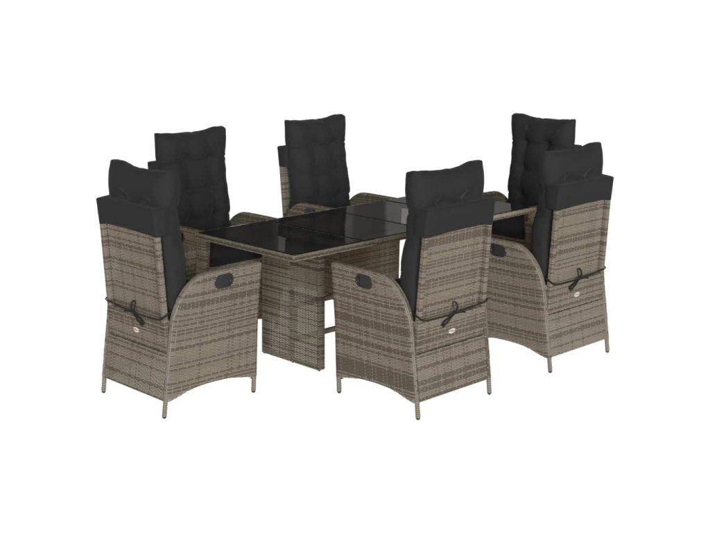 - Materiál: PE ratan, práškově lakovaná ocel, tvrzené sklo