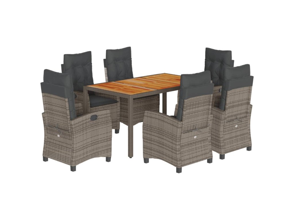 - Materiál: PE ratan, práškově lakovaná ocel, masivní akáciové dřevo s olejovou povrchovou úpravou