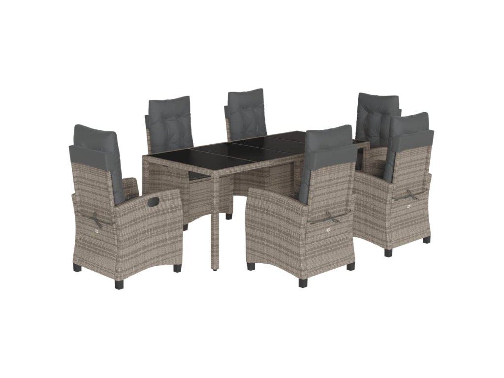 - Materiál: PE ratan, práškově lakovaná ocel, tvrzené sklo