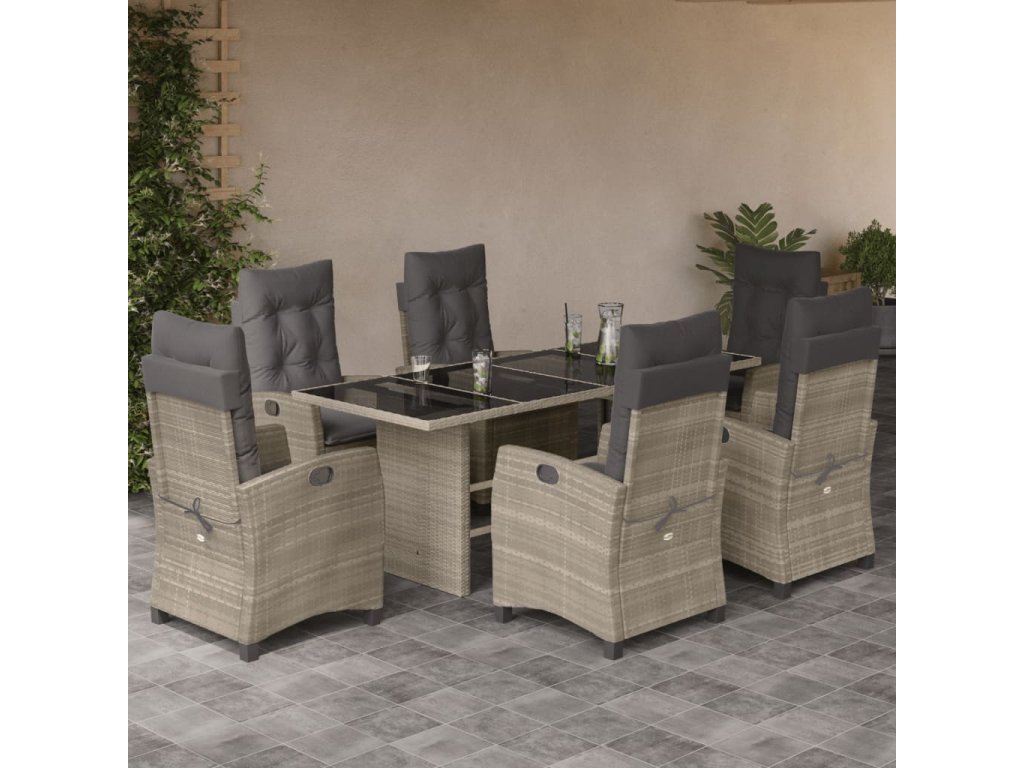 - Materiál: PE ratan, práškově lakovaná ocel, tvrzené sklo