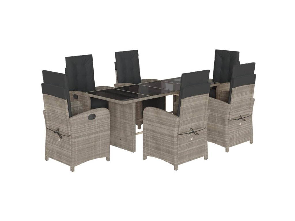 - Materiál: PE ratan, práškově lakovaná ocel, tvrzené sklo