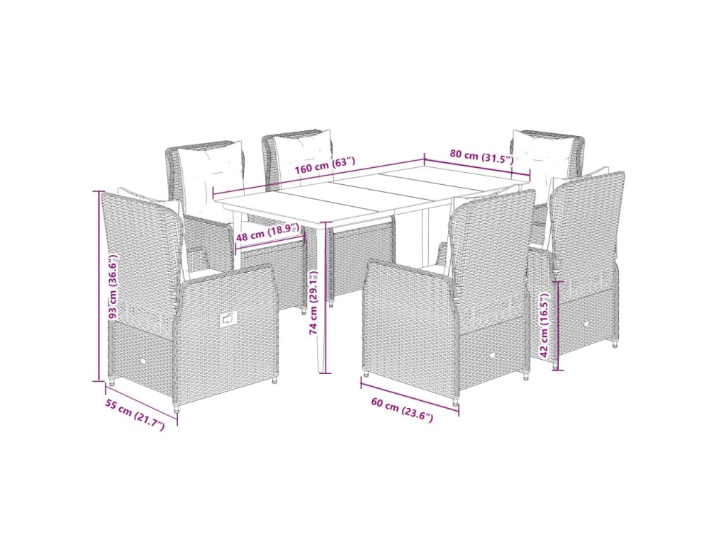 - Pohodlné sezení: Tento venkovní nábytek se silně polstrovanými poduškami a polštáři nabízí pohodlné sezení.