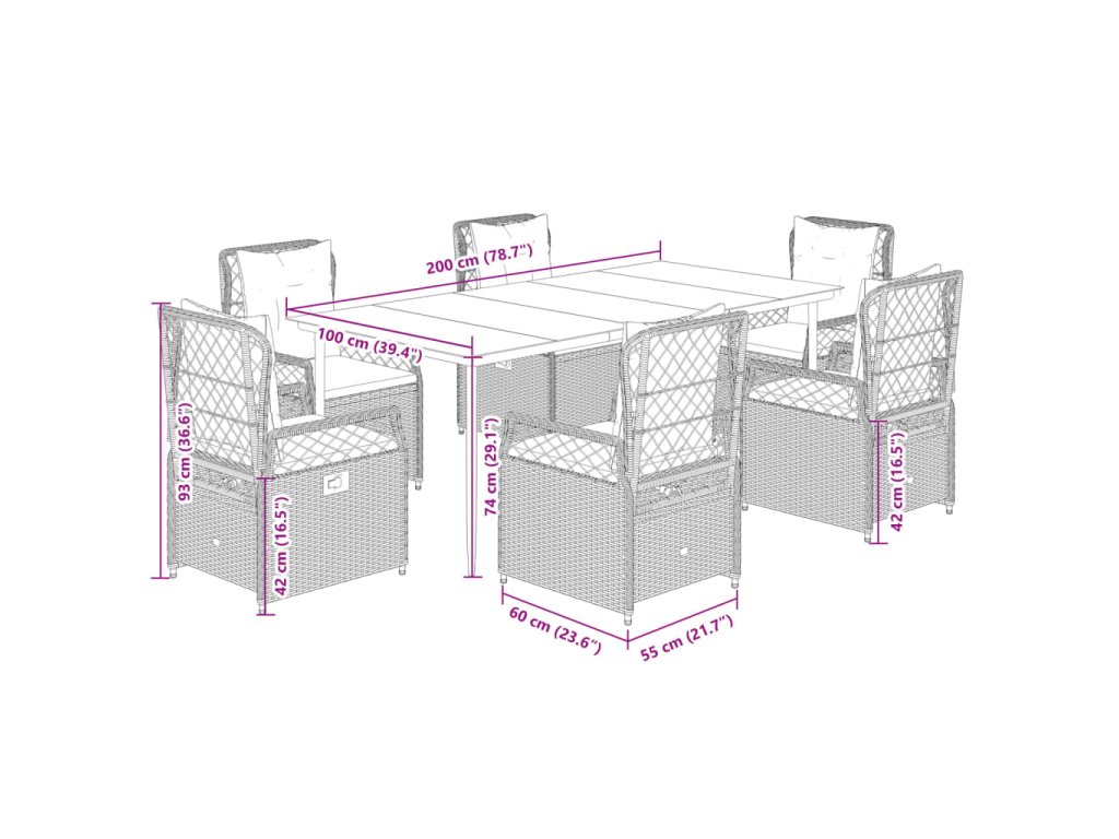 - Pohodlné sezení: Tento venkovní nábytek se silně polstrovanými poduškami a polštáři nabízí pohodlné sezení.