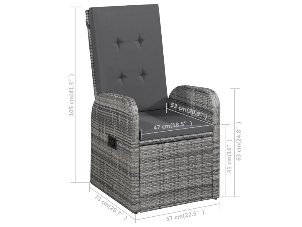 Jídelní stůl je zhotovený z masivního akáciového dřeva s olejovaným povrchem, takže je stabilní, odolný a nenáročný na údržbu. Jídelní židle mají rám z práškově lakované oceli, opletený PE ratanem, který výborně vzdoruje klimatickým vlivům. Dlouho vám proto vydrží a snadno je očistíte. Opěradlo lze sklopit zatažením za tlačítko na boku. Židle mají lehkou konstrukci, není tedy problém je přesunout, kam potřebujete. Navíc jsou opatřené mimořádně pohodlnými, hustě polstrovanými poduškami pro maximální komfort. Jejich polyesterové potahy nevyžadují téměř žádnou údržbu a dají se stáhnout a oprat.