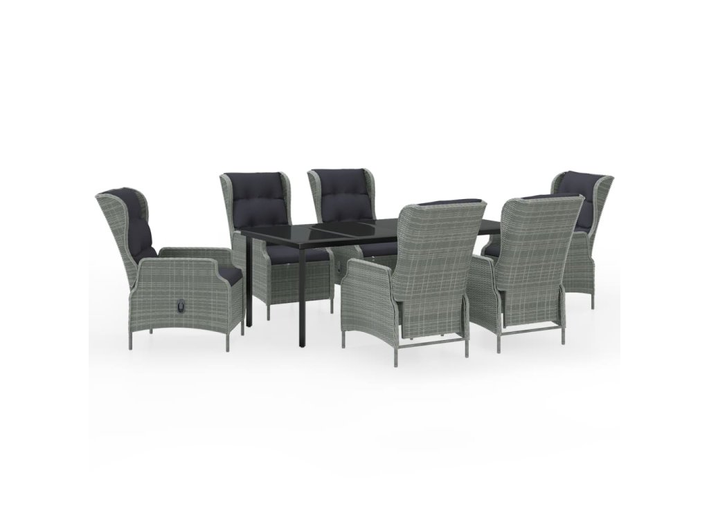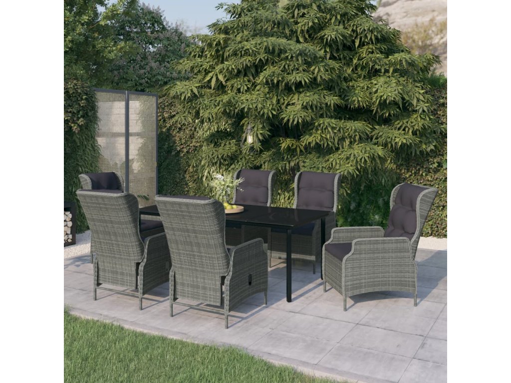 Praktický zahradní jídelní set má ocelový rám, takže je pevný a má dlouhou životnost. Polohovací židle jsou vyrobené z voděodolného PE ratanu, který nevyžaduje žádnou údržbu, hodí se proto skvěle k venkovnímu použití. Hustě polstrované podušky vám při stolování poskytnou maximální pohodlí. Potah podušky je opatřený zipem, lze ho tedy stáhnout a vyprat. Pomocí mechanismu s plynovým pístem si navíc snadno přizpůsobíte opěradlo křesla podle vlastních potřeb. Stisknutím tlačítka na boku ho sklopíte do té nejpohodlnější pozice. Hladká skleněná stolní deska, kterou jednoduše očistíte vlhkým hadříkem, je ideální k podávání jídla a pití nebo k vystavování různých dekorativních předmětů.