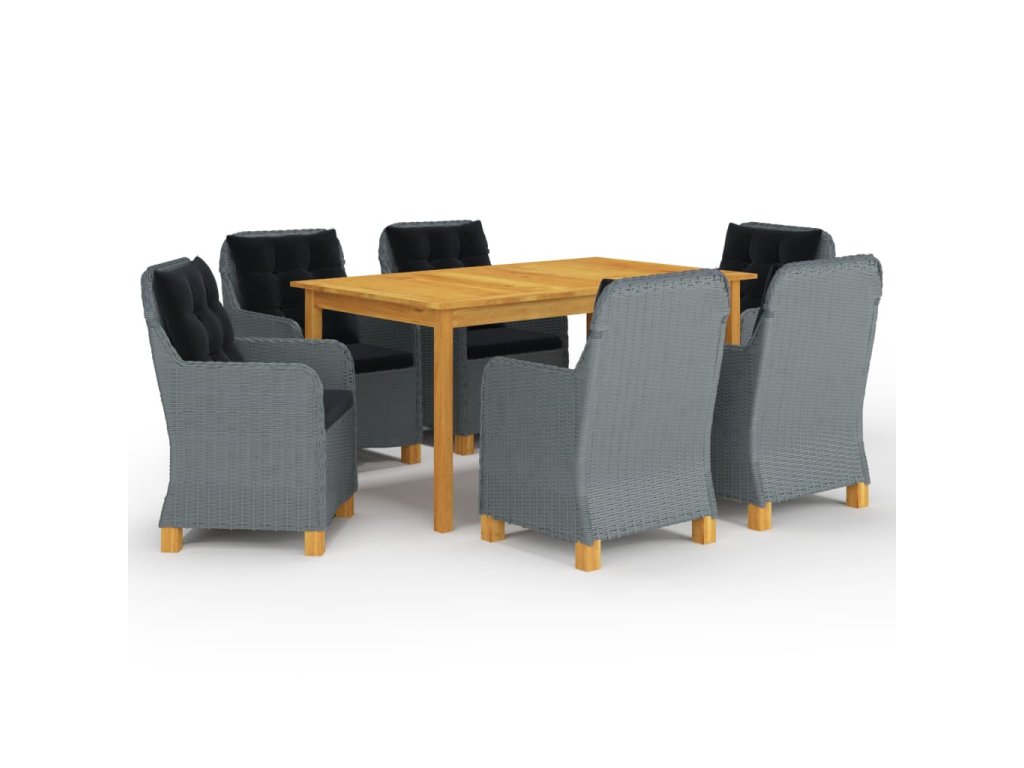 Jídelní stůl je zhotovený z masivního akáciového dřeva s olejovaným povrchem, takže je stabilní, odolný a nenáročný na údržbu. Zahradní židle mají rám z práškově lakované oceli, opletený kulatým PE ratanem, který výborně vzdoruje klimatickým vlivům. Dlouho vám proto vydrží a snadno je očistíte. Hustě polstrované podušky vám při odpočinku zaručí mimořádný komfort. Jejich potahy jsou opatřené zipem, abyste je mohli bez námahy stáhnout a oprat. Nohy z masivního akáciového dřeva přispívají k lepší stabilitě a delší životnosti. Vzhledem k jejich lehké konstrukci lze jídelní židle jednoduše přesouvat, kam potřebujete.