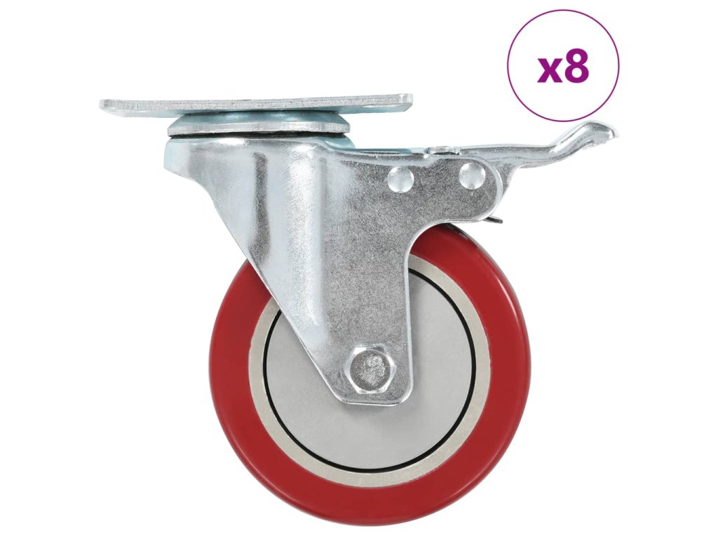 - Balení obsahuje 8 otočných koleček, z nichž polovina je s brzdou
