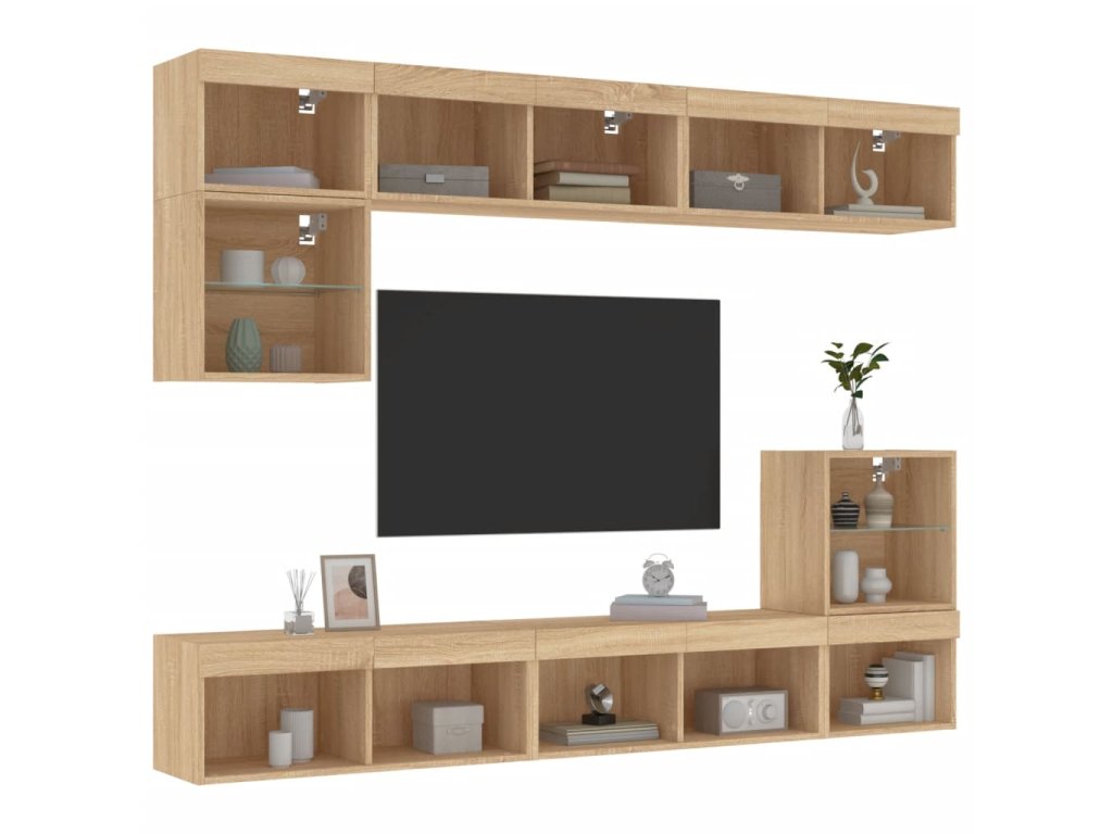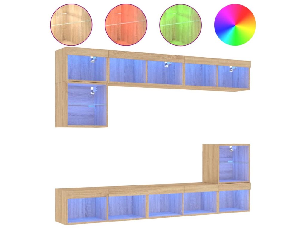 - RGB LED světla: TV jednotka je vybavena živými RGB LED světly. Různé přizpůsobitelné nabídky vám umožní snadno změnit barvu světel nebo dokonce i nastavit světla tak, aby se přizpůsobila automaticky. Tato LED světla nejen podtrhují moderní vzhled plovoucí TV skříňky, ale také jí dodávají na módním půvabu.