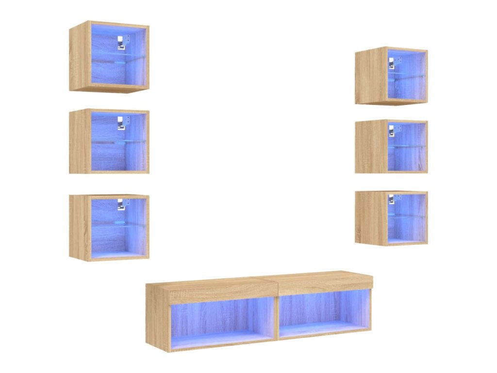 - RGB LED světla: TV jednotka je vybavena živými RGB LED světly. Různé přizpůsobitelné nabídky vám umožní snadno změnit barvu světel nebo dokonce i nastavit světla tak, aby se přizpůsobila automaticky. Tato LED světla nejen podtrhují moderní vzhled plovoucí TV skříňky, ale také jí dodávají na módním půvabu.