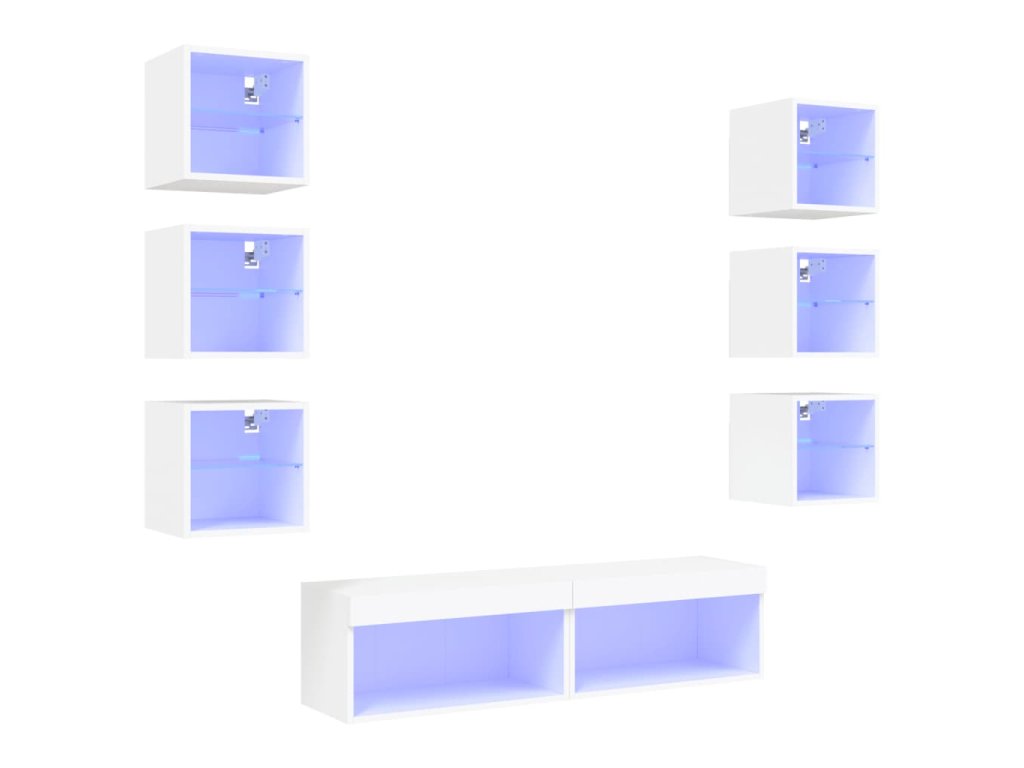 - RGB LED světla: TV jednotka je vybavena živými RGB LED světly. Různé přizpůsobitelné nabídky vám umožní snadno změnit barvu světel nebo dokonce i nastavit světla tak, aby se přizpůsobila automaticky. Tato LED světla nejen podtrhují moderní vzhled plovoucí TV skříňky, ale také jí dodávají na módním půvabu.