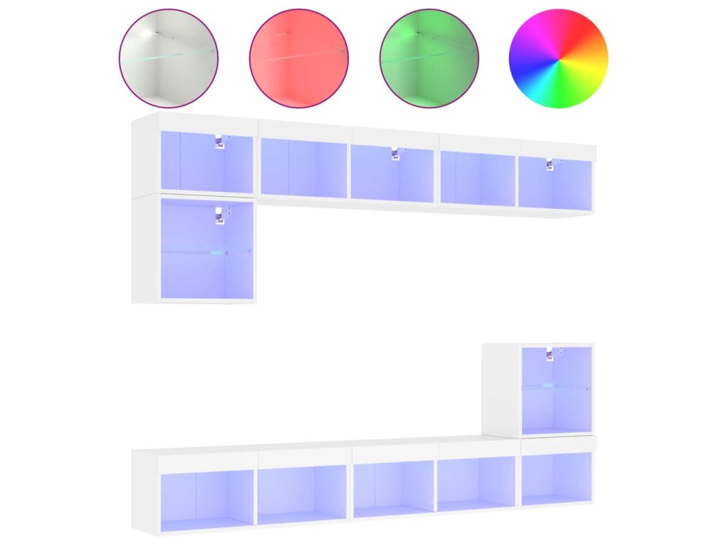 - RGB LED světla: TV jednotka je vybavena živými RGB LED světly. Různé přizpůsobitelné nabídky vám umožní snadno změnit barvu světel nebo dokonce i nastavit světla tak, aby se přizpůsobila automaticky. Tato LED světla nejen podtrhují moderní vzhled plovoucí TV skříňky, ale také jí dodávají na módním půvabu.