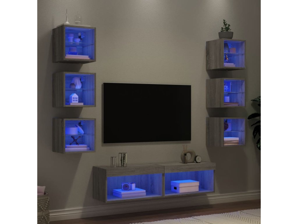 - RGB LED světla: TV jednotka je vybavena živými RGB LED světly. Různé přizpůsobitelné nabídky vám umožní snadno změnit barvu světel nebo dokonce i nastavit světla tak, aby se přizpůsobila automaticky. Tato LED světla nejen podtrhují moderní vzhled plovoucí TV skříňky, ale také jí dodávají na módním půvabu.