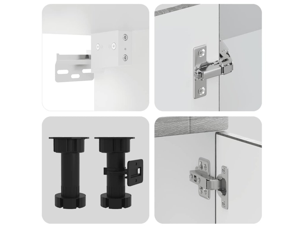 - Nastavitelné nožičky: Spodní skříňky mají nastavitelné nožičky, jejichž výšku lze nastavit tak, aby vyhovovaly uspořádání vaší kuchyně.