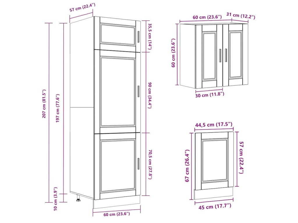 - 1x skříňka na troubu: 60 x 46 x 81,5 cm (Š x H x V)