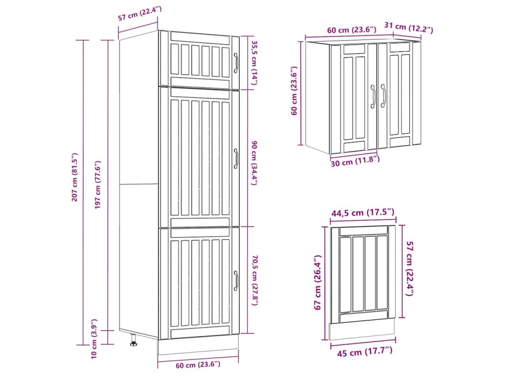 - 1 x Kuchyňská skříňka: 60 x 57 x 207 cm (Š x H x V)