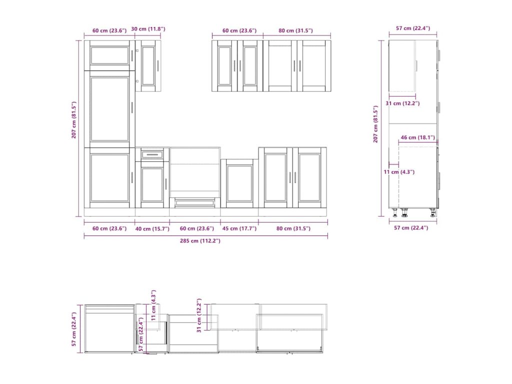 - 1x skříňka na troubu: 60 x 46 x 81,5 cm (Š x H x V)
