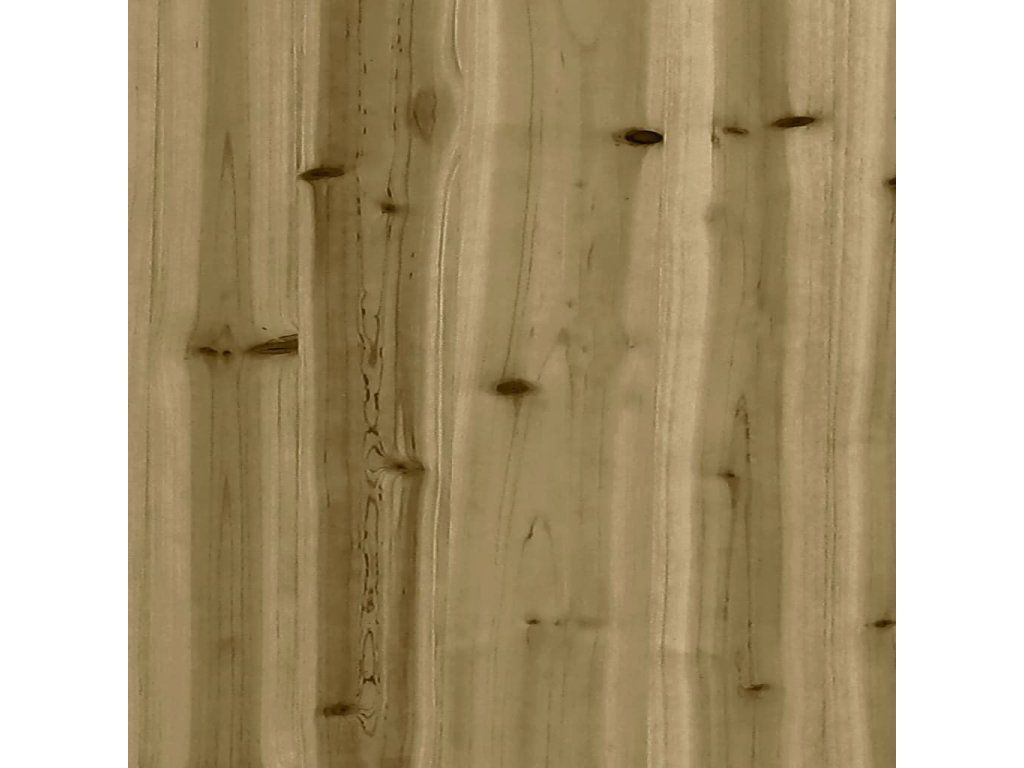- Pevný a odolný materiál: Masivní borové dřevo je známé svou pevností a odolností. Jeho rovná textura a výrazné suky přispívají k jeho rustikálnímu kouzlu. Dřevo bylo napuštěno konzervačním roztokem a ošetřeno v autoklávu, čímž se zvýšila jeho odolnost proti hnilobě a povětrnostním vlivům.