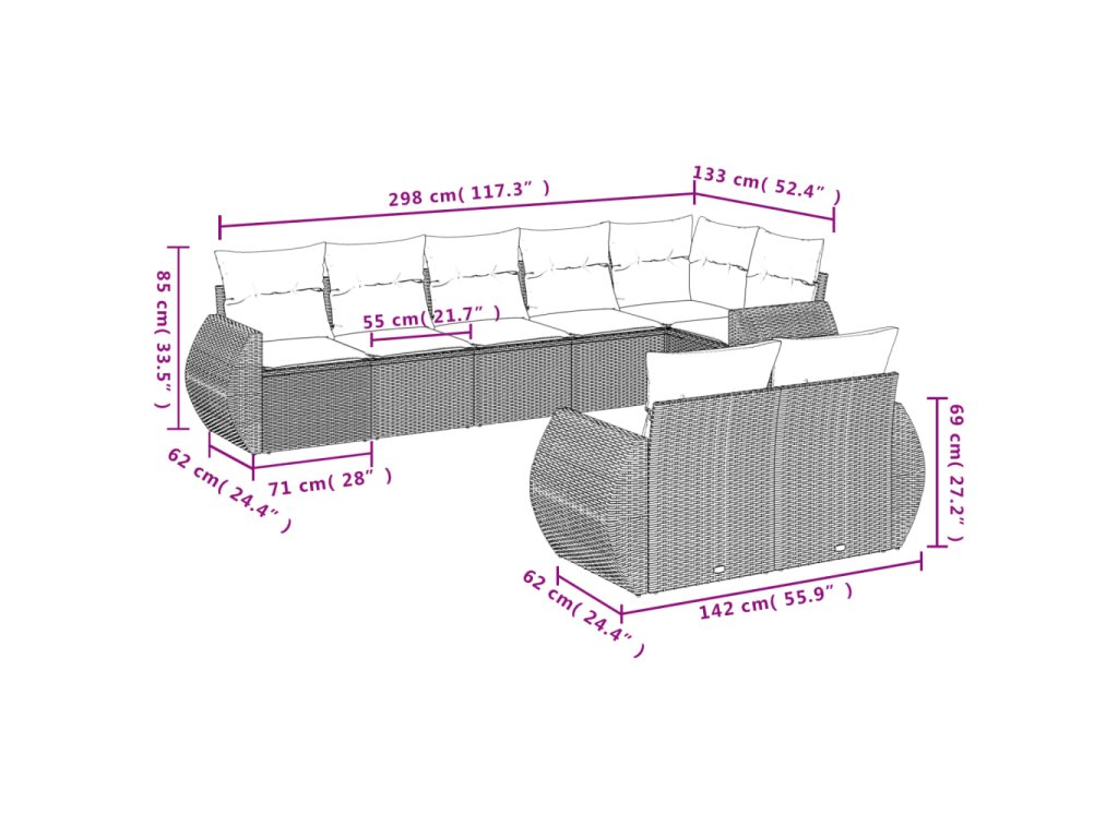 Tato zahradní sedací souprava je dokonalým doplňkem vaší zahrady, terasy nebo dvorku a poskytne vám pohodlné a příjemné místo, kde si můžete povídat s rodinou a přáteli nebo jen tak odpočívat a užívat si pobyt venku.