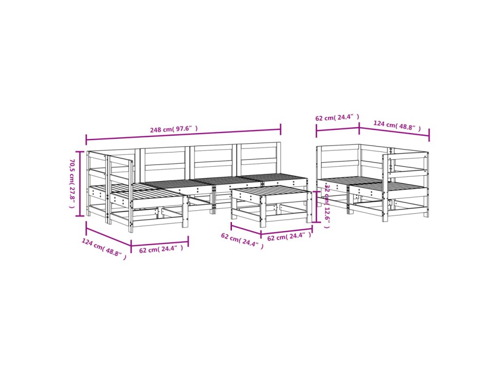 - Rozměry středové pohovky: 62 x 62 x 70,5 cm (D x Š x V)
