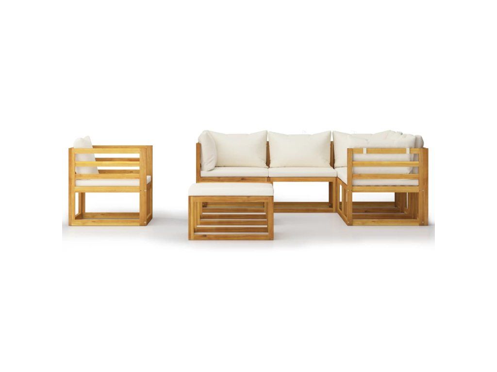 Rám z masivního akáciového dřeva je pevný, odolný a má dlouhou životnost. Dřevo je napuštěné olejem, sedací souprava je proto vhodná i pro venkovní použití. Odnímatelné podušky na sedáky a opěradla jsou silně polstrované, takže se vám na nich bude nesmírně dobře sedět. Součástí balení je také konferenční stolek v unikátním laťkovém provedení. Nevšední modulární design vám umožní všechny díly přestavovat a upravovat dle momentálních potřeb.