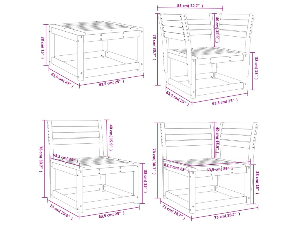 - Rozměry: 63,5 x 63,5 x 38 cm (Š x H x V)