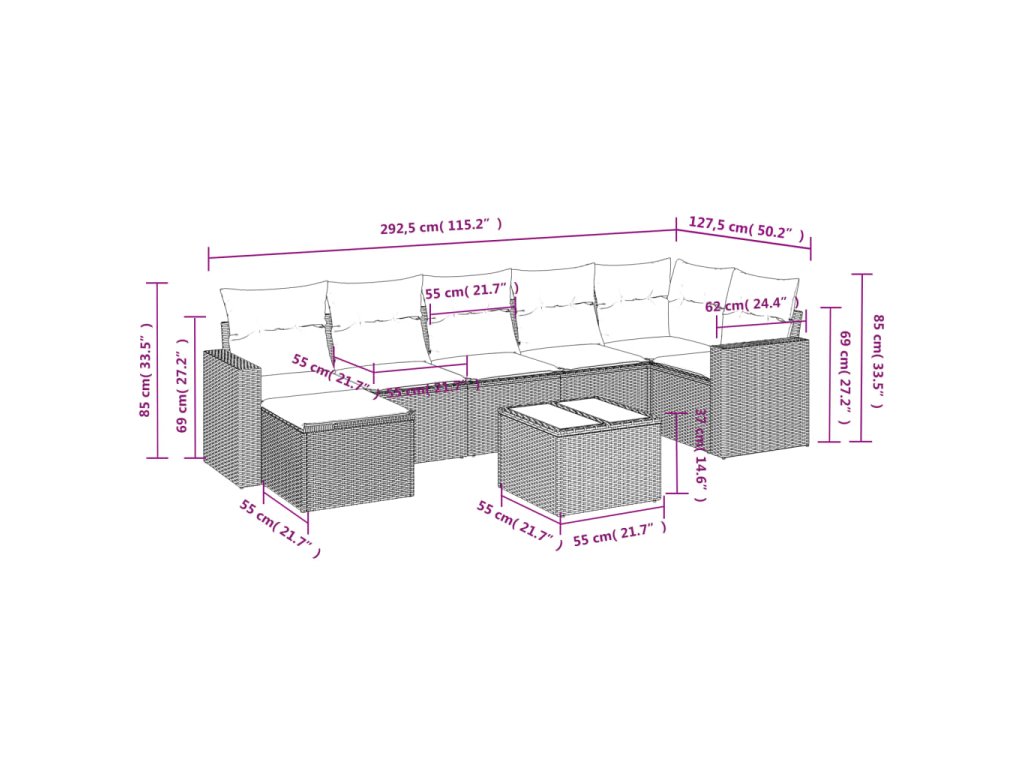 Tato zahradní sedací souprava je dokonalým doplňkem vaší zahrady, terasy nebo dvorku a poskytne vám pohodlné a příjemné místo, kde si můžete povídat s rodinou a přáteli nebo jen tak odpočívat a užívat si pobyt venku.