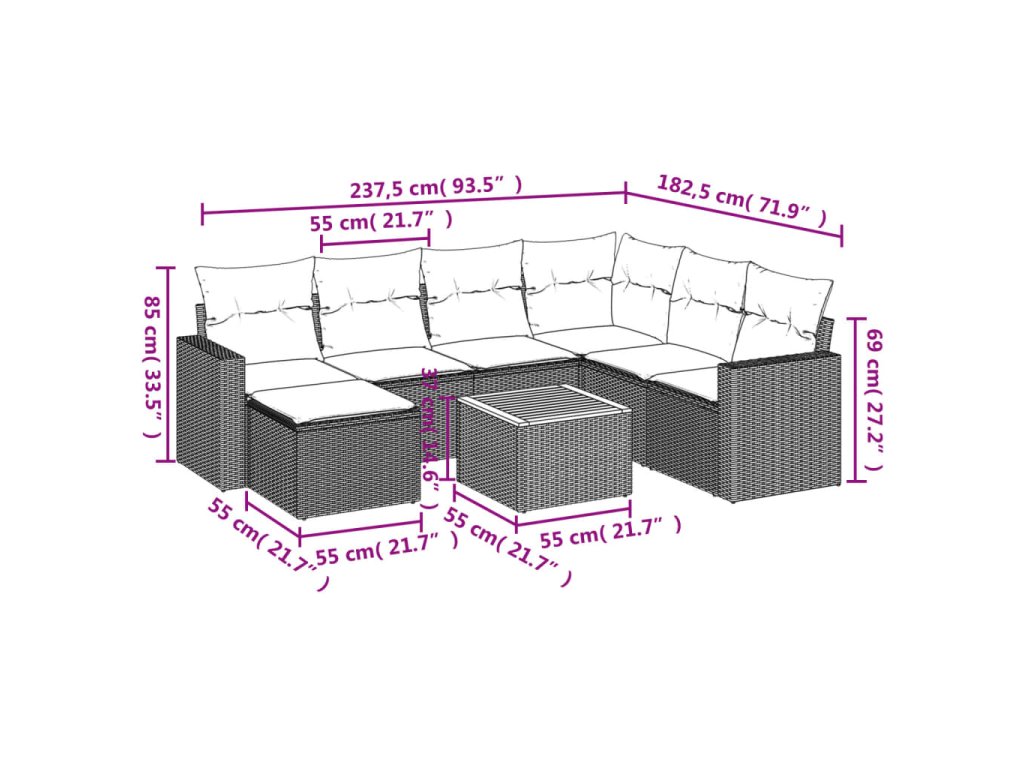 Tato zahradní sedací souprava je dokonalým doplňkem vaší zahrady, terasy nebo dvorku a poskytne vám pohodlné a příjemné místo, kde si můžete povídat s rodinou a přáteli nebo jen tak odpočívat a užívat si pobyt venku.
