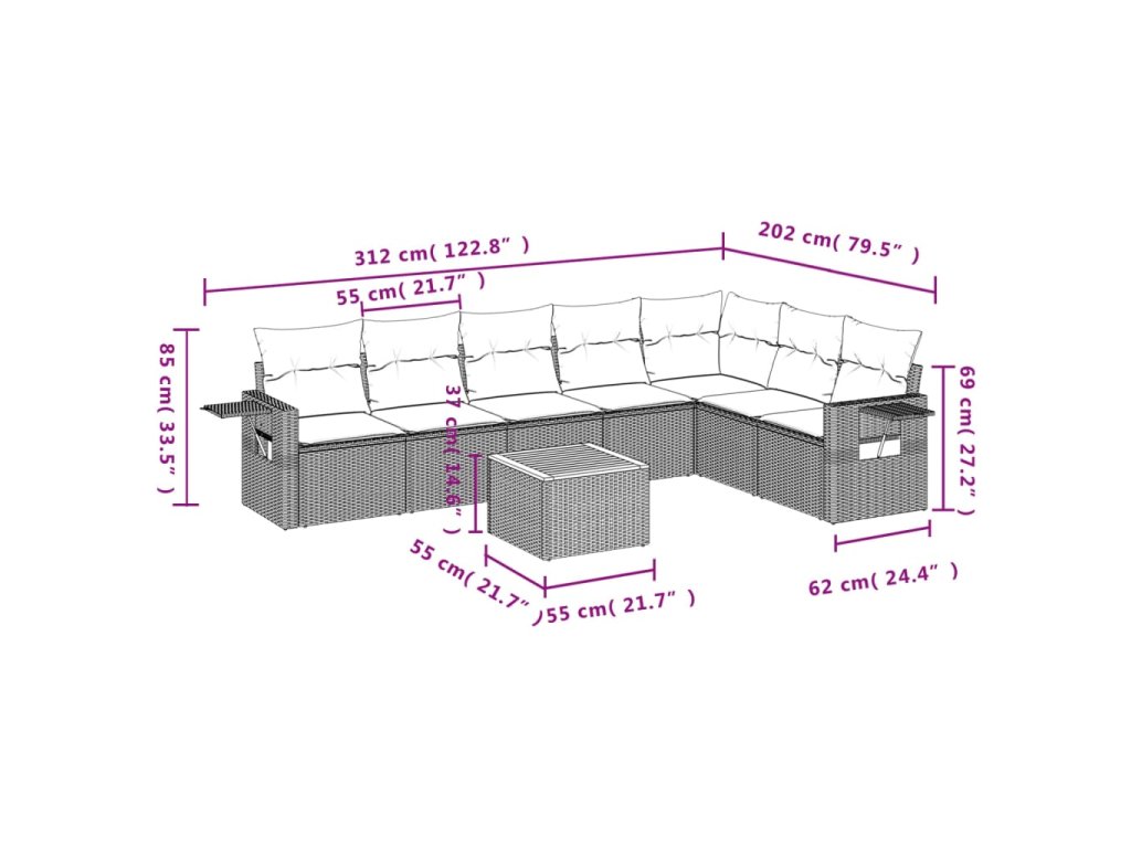 Tato zahradní sedací souprava je dokonalým doplňkem vaší zahrady, terasy nebo dvorku a poskytne vám pohodlné a příjemné místo, kde si můžete povídat s rodinou a přáteli nebo jen tak odpočívat a užívat si pobyt venku.