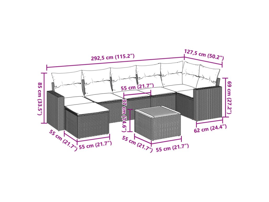 Tato zahradní sedací souprava je dokonalým doplňkem vaší zahrady, terasy nebo dvorku a poskytne vám pohodlné a příjemné místo, kde si můžete povídat s rodinou a přáteli nebo jen tak odpočívat a užívat si pobyt venku.