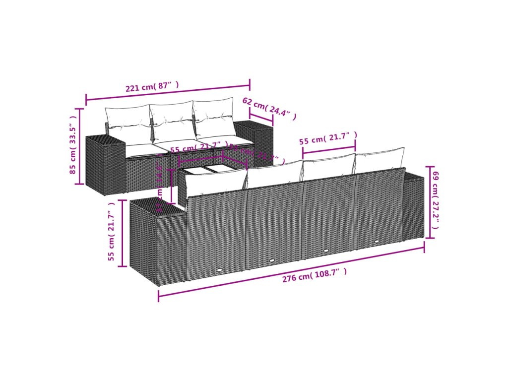 Tato zahradní sedací souprava je dokonalým doplňkem vaší zahrady, terasy nebo dvorku a poskytne vám pohodlné a příjemné místo, kde si můžete povídat s rodinou a přáteli nebo jen tak odpočívat a užívat si pobyt venku.