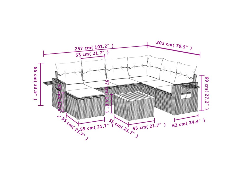 Tato zahradní sedací souprava je dokonalým doplňkem vaší zahrady, terasy nebo dvorku a poskytne vám pohodlné a příjemné místo, kde si můžete povídat s rodinou a přáteli nebo jen tak odpočívat a užívat si pobyt venku.